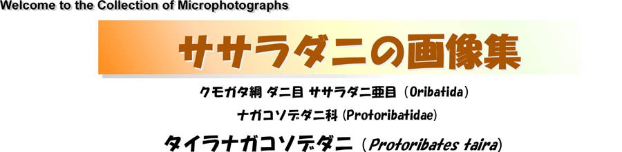 タイラナガコソデダニ(Protoribates taira)は体長0.34mm、生殖側毛は生殖門と肛門の間の前から1/3に位置します。