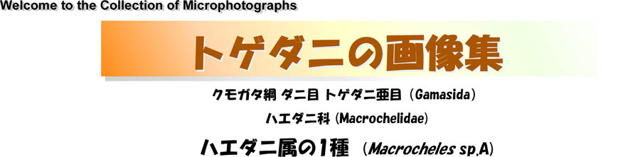 ハエダニ属(Macrocheles)はハエダニ科(Macrochelidae)に属しています。ハエダニ科は胴長0.5~1.4mm、周気管基部は外側に